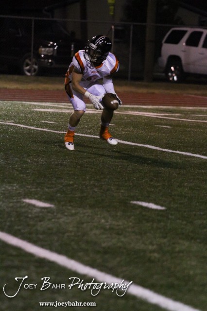 Larned Indian Gage Stude (#2) picks up a ball from a kickoff during the Larned at Hoisington High School Football game with Hoisington winning 27 to 9 at Elton Brown Field in Hoisington, Kansas on October 11, 2013. (Photo: Joey Bahr, www.joeybahr.com)