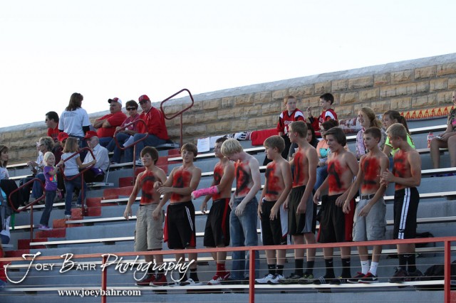 Hoisington students show of their body paint before the Larned at Hoisington High School Football game with Hoisington winning 27 to 9 at Elton Brown Field in Hoisington, Kansas on October 11, 2013. (Photo: Joey Bahr, www.joeybahr.com)
