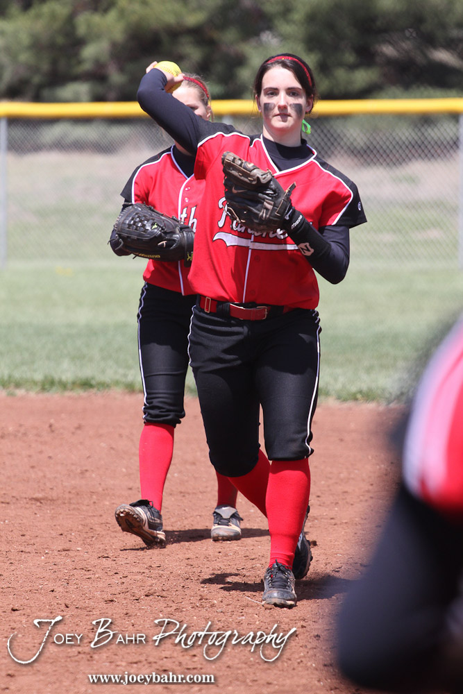 Great Bend Lady Panther Morgan Kottas (#25) throws the ball during the Liberal Lady Redskins at Great Bend Lady Panthers Softball Double Header with Great Bend winning both games 18-0 (3 innings) 13-0 at Barton Community College Softball Field in Great Bend, Kansas on April 27, 2013. (Photo: Joey Bahr, www.joeybahr.com)