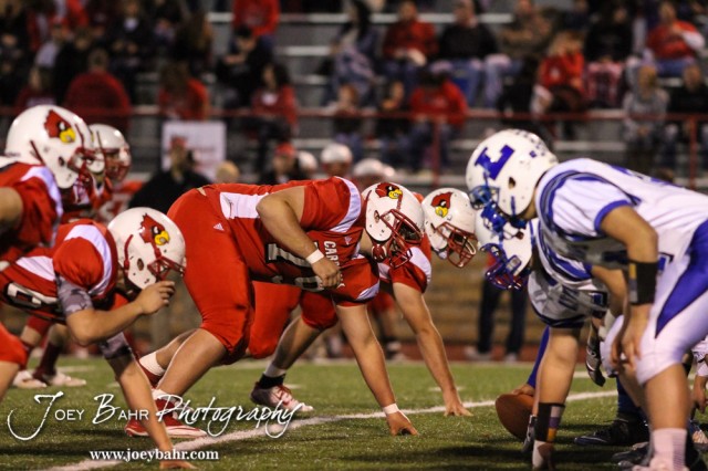 during the Hoisington Cardinals versus Lyons Lions High School Football game with Hoisington winning 54 to 13
