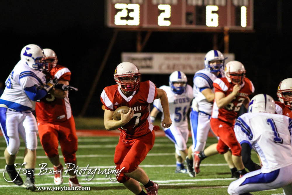 during the Hoisington Cardinals versus Lyons Lions High School Football game with Hoisington winning 54 to 13