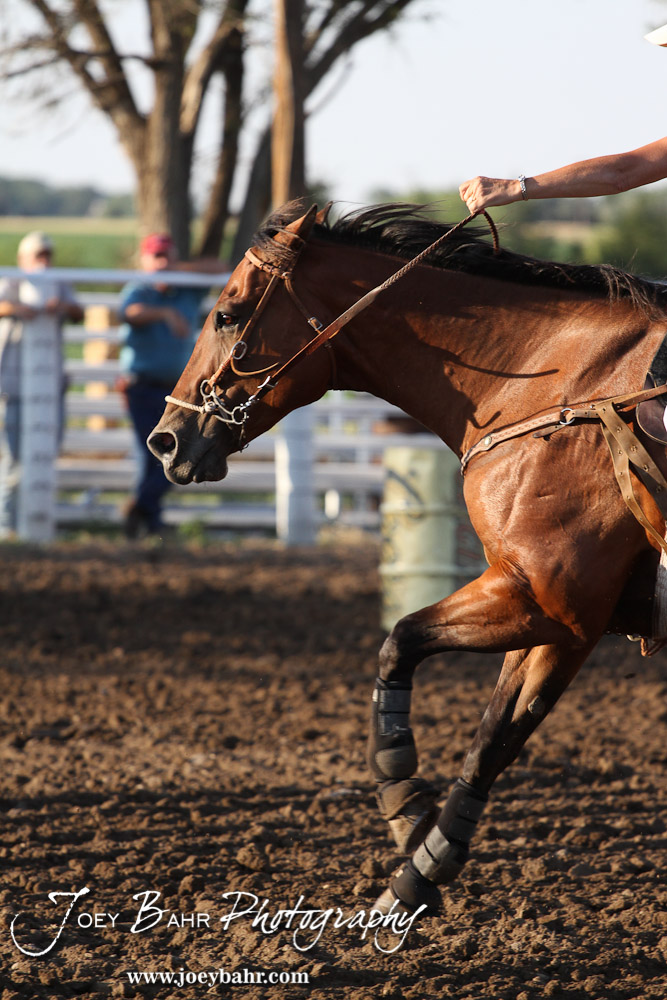 A barrel racer performs during the National Barrel Horse Association Kansas District 4 Race at the 26th Annual McCracken Rodeo at Jack Wilson Mustang Arena in McCracken, Kansas on July 11, 2012. (Photo: Joey Bahr, www.joeybahr.com)
