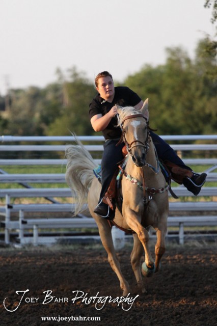 A barrel racer performs during the National Barrel Horse Association Kansas District 4 Race at the 26th Annual McCracken Rodeo at Jack Wilson Mustang Arena in McCracken, Kansas on July 11, 2012. (Photo: Joey Bahr, www.joeybahr.com)