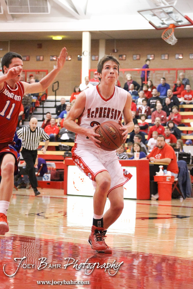 Dodge City at McPherson Boys Basketball game with McPherson winning 53 to 42