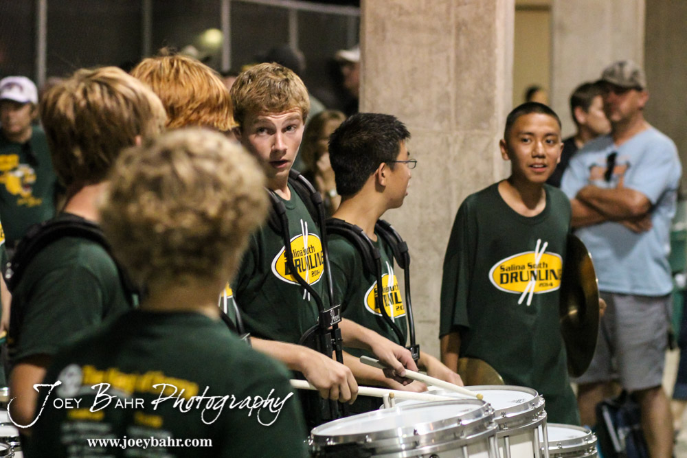 Members of the Salina South Drumline perform following the McPherson Bullpups versus Salina South Cougars High School Football gamme with Salina South winning 61 to 32 at Salina Stadium in Salina, Kansas on September 4, 2014. (Photo: Joey Bahr, www.joeybahr.com)