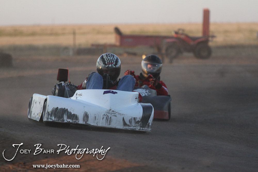 Wesley Reicheck(#2) drives in the Feature Race of the Junior 2 Heavy Class at the Ness County Speedway Kart Races sponsored by Walker Tank Service at Ness County Speedway in Ness City, Kansas on August 18, 2012. (Photo: Joey Bahr, www.joeybahr.com)