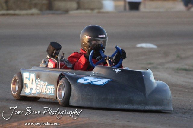Sierra Swart(#54) drives in the Feature Race of the Junior 2 Heavy Class at the Ness County Speedway Kart Races sponsored by Walker Tank Service at Ness County Speedway in Ness City, Kansas on August 18, 2012. (Photo: Joey Bahr, www.joeybahr.com)