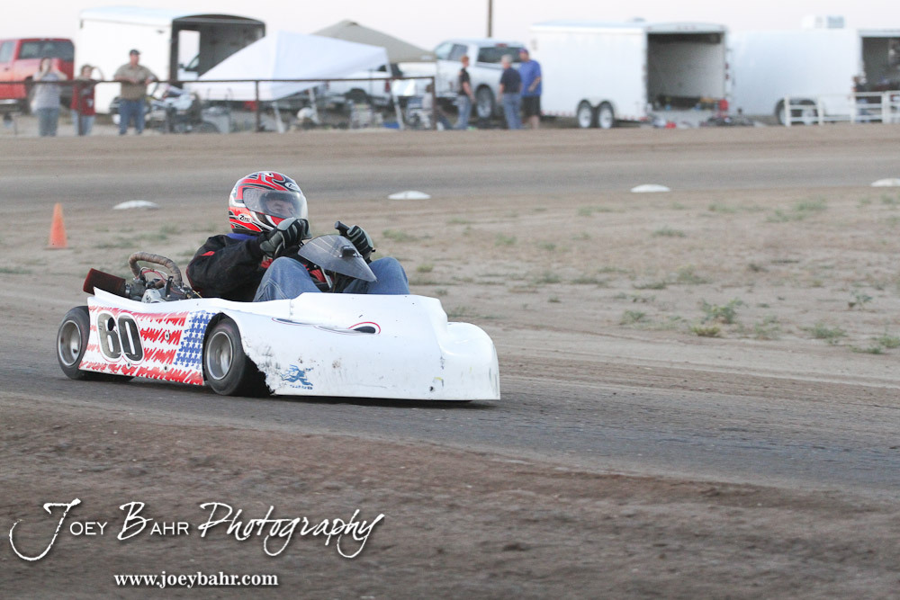 Gary Richards(#60) drives in the Adult/Animal Class Feature Race at the Ness County Speedway Kart Races sponsored by Walker Tank Service at Ness County Speedway in Ness City, Kansas on August 18, 2012. (Photo: Joey Bahr, www.joeybahr.com)