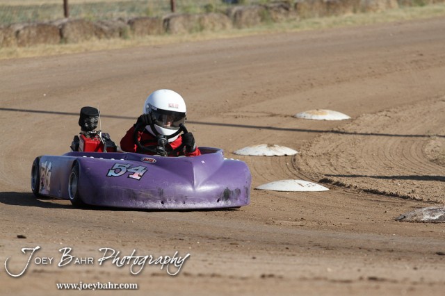 Nicholas Sherfick(#54) drives at the Ness County Speedway Kart Races sponsored by Walker Tank Service at Ness County Speedway in Ness City, Kansas on August 18, 2012. (Photo: Joey Bahr, www.joeybahr.com)