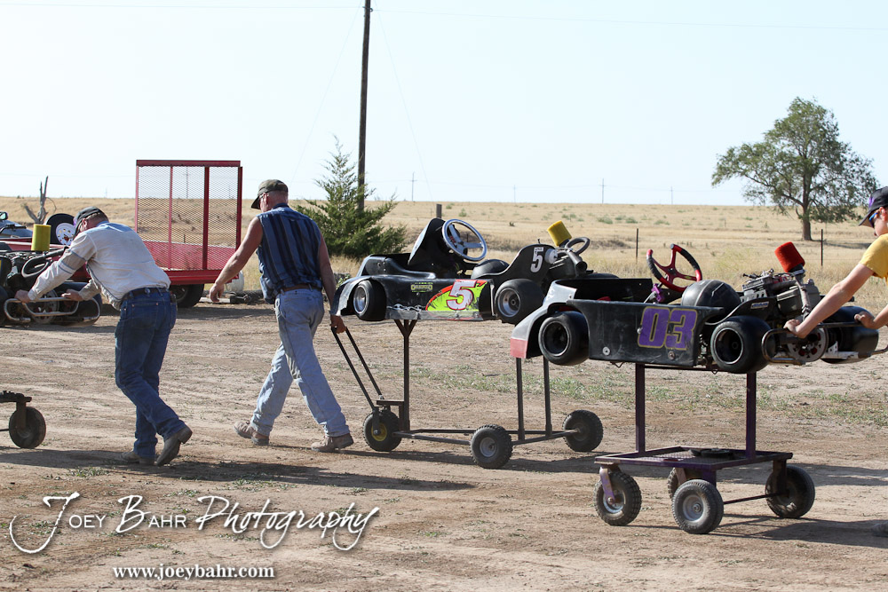 Teams push their karts to the track at the Ness County Speedway Kart Races sponsored by Walker Tank Service at Ness County Speedway in Ness City, Kansas on August 18, 2012. (Photo: Joey Bahr, www.joeybahr.com)