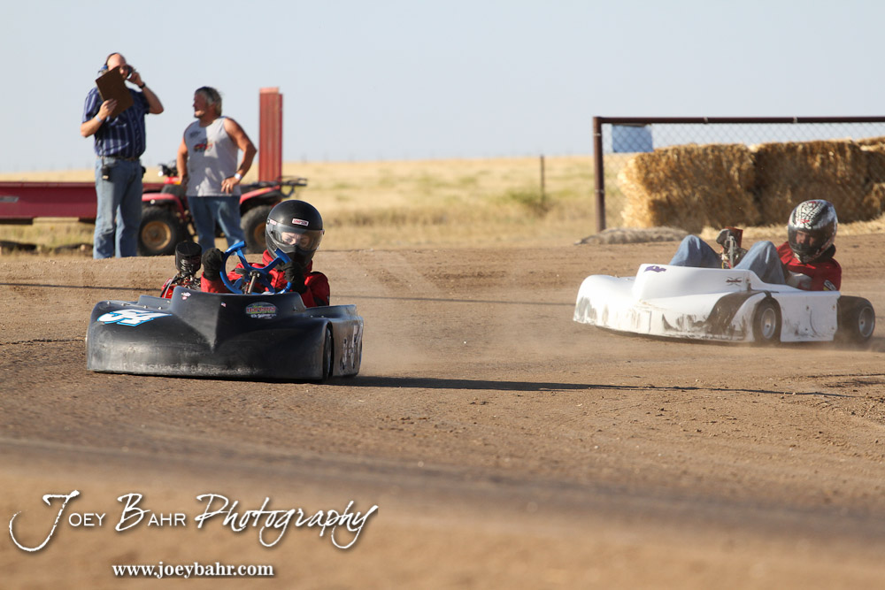 Sierra Swart(#54) drives in Heat 1 of the Junior 2 Heavy Class at the Ness County Speedway Kart Races sponsored by Walker Tank Service at Ness County Speedway in Ness City, Kansas on August 18, 2012. (Photo: Joey Bahr, www.joeybahr.com)