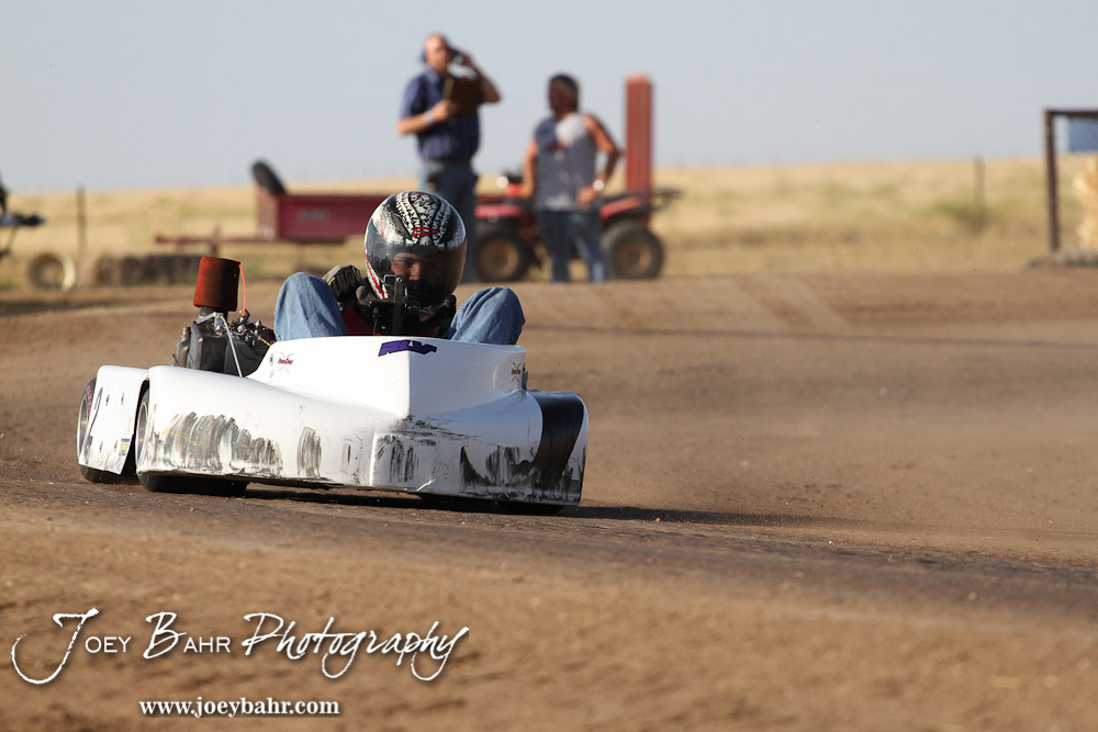 Wesley Reicheck(#2) drives in Heat 1 of the Junior 2 Heavy Class at the Ness County Speedway Kart Races sponsored by Walker Tank Service at Ness County Speedway in Ness City, Kansas on August 18, 2012. (Photo: Joey Bahr, www.joeybahr.com)