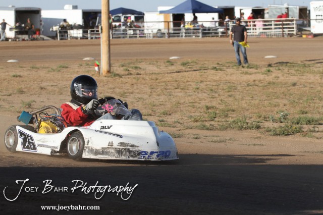 Wendy Parcell(#26) drives in Heat 1 of the Clones Class at the Ness County Speedway Kart Races sponsored by Walker Tank Service at Ness County Speedway in Ness City, Kansas on August 18, 2012. (Photo: Joey Bahr, www.joeybahr.com)