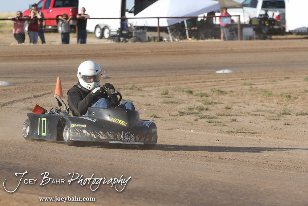 Dakota Slagle(#10) drives in Heat 1 of the Clones Class at the Ness County Speedway Kart Races sponsored by Walker Tank Service at Ness County Speedway in Ness City, Kansas on August 18, 2012. (Photo: Joey Bahr, www.joeybahr.com)