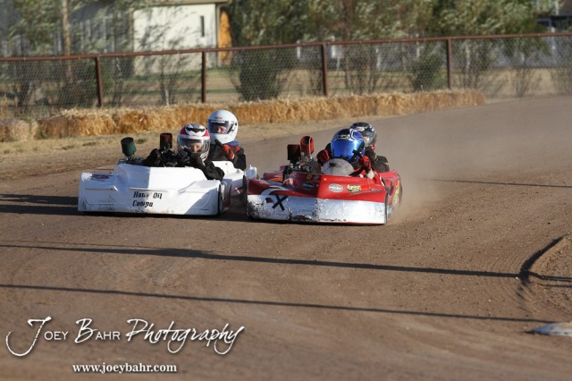 Racers start Heat 2 of the Junior 1 Heavy Class at the Ness County Speedway Kart Races sponsored by Walker Tank Service at Ness County Speedway in Ness City, Kansas on August 18, 2012. (Photo: Joey Bahr, www.joeybahr.com)