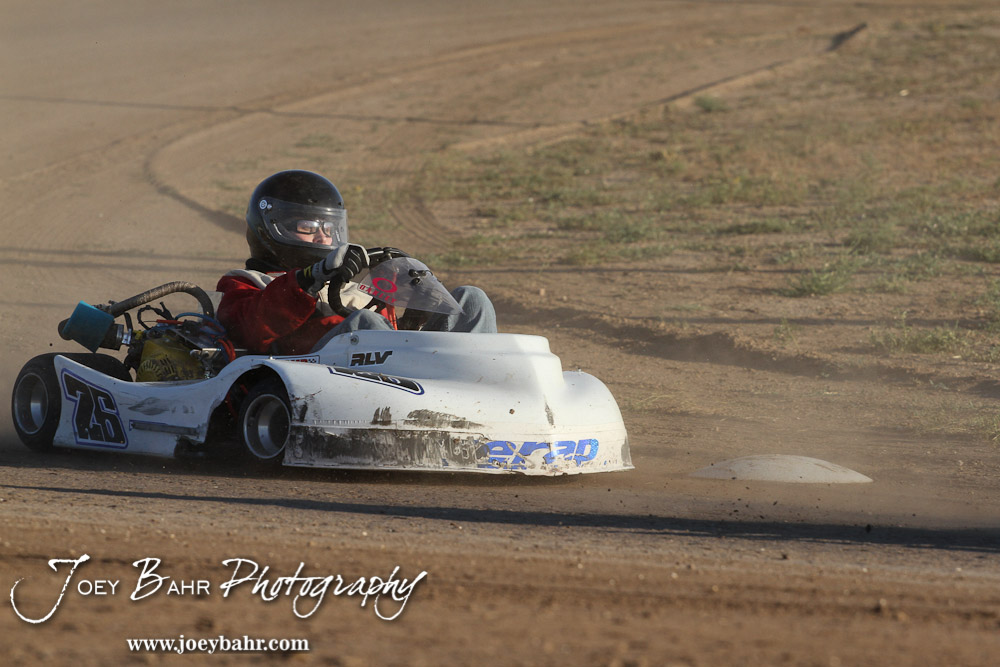 Wendy Parcell(#26) drives in Heat 2 of the Clones Class at the Ness County Speedway Kart Races sponsored by Walker Tank Service at Ness County Speedway in Ness City, Kansas on August 18, 2012. (Photo: Joey Bahr, www.joeybahr.com)
