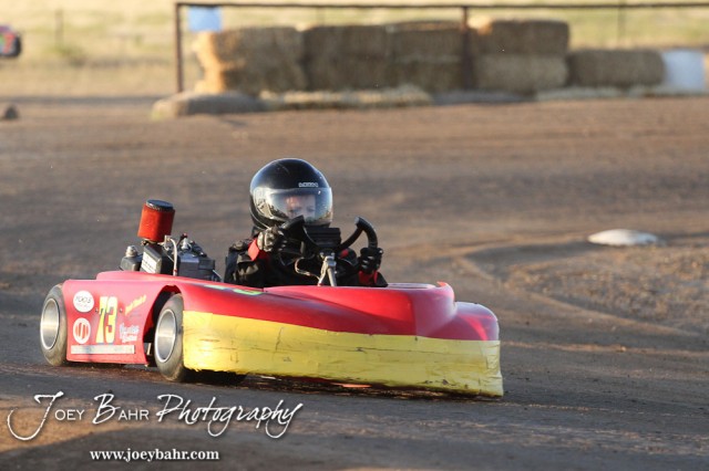 Gratton Dalton(#73) drives in the Feature Race of the Rookie Class at the Ness County Speedway Kart Races sponsored by Walker Tank Service at Ness County Speedway in Ness City, Kansas on August 18, 2012. (Photo: Joey Bahr, www.joeybahr.com)