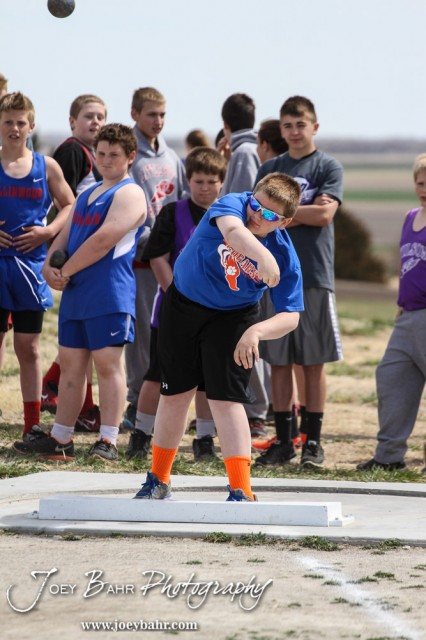 during the Junior High Oiler Relays Track Meet at Barton Community College Track and Field Complex in Great Bend, Kansas on April 10, 2014. (Photo: Joey Bahr, www.joeybahr.com)