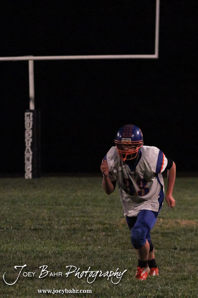 Otis-Bison Cougar Jordan Hoffman (#33) starts a pass route during the Otis-Bison visiting Sylvan-Lucas Unified Eight Man Division II District 7 matchup with Otis-Bison winning 76-26 in Sylvan Grove, Kansas on October 25, 2012. (Photo: Joey Bahr, www.joeybahr.com)