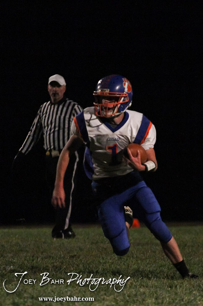 Otis-Bison Cougar Kole Urban (#1) carries the ball during the Otis-Bison visiting Sylvan-Lucas Unified Eight Man Division II District 7 matchup with Otis-Bison winning 76-26 in Sylvan Grove, Kansas on October 25, 2012. (Photo: Joey Bahr, www.joeybahr.com)