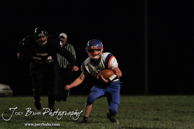 Otis-Bison Cougar Kole Urban (#1) carries the ball during the Otis-Bison visiting Sylvan-Lucas Unified Eight Man Division II District 7 matchup with Otis-Bison winning 76-26 in Sylvan Grove, Kansas on October 25, 2012. (Photo: Joey Bahr, www.joeybahr.com)