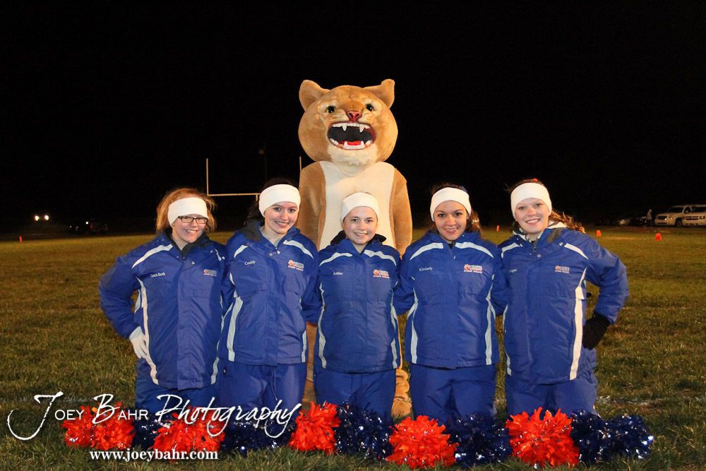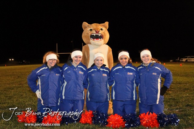 The Otis-Bison Cougar cheerleaders pose for a picture after the Otis-Bison visiting Sylvan-Lucas Unified Eight Man Division II District 7 matchup with Otis-Bison winning 76-26 in Sylvan Grove, Kansas on October 25, 2012. (Photo: Joey Bahr, www.joeybahr.com)