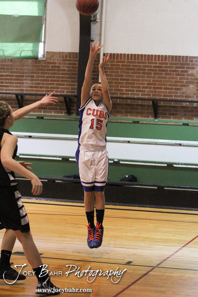 Otis-Bison Junior High Girls versus LaCrosse First Round game at the Central Prairie League Junior High Varsity Tournament held at Central Plains Middle School in Holyrood, Kansas on January 26, 2013. (Photo: Joey Bahr, www.joeybahr.com)