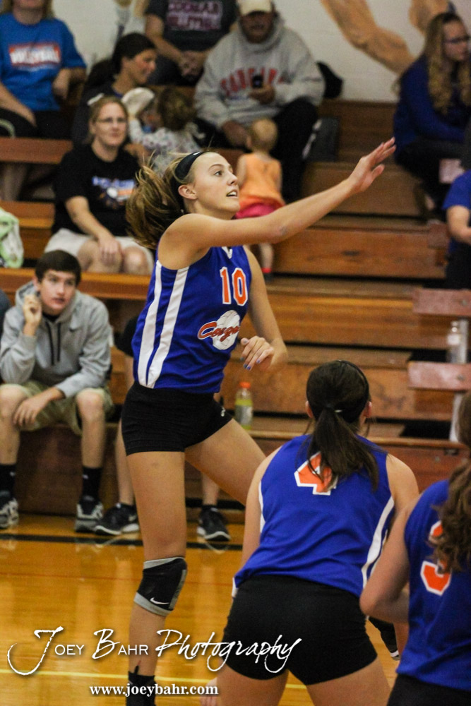 during the Otis-Bison/LaCrosse Volleyball Tournament at Otis-Bison High School in Otis, Kansas on September 14, 2013. (Photo: Joey Bahr, www.joeybahr.com)
