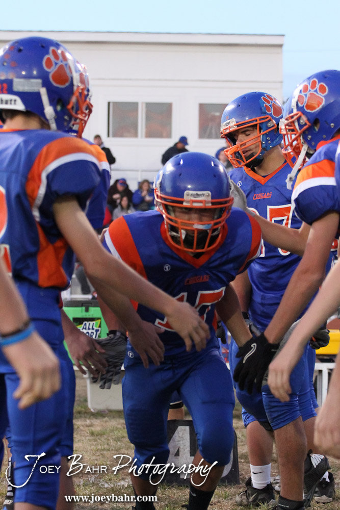 Otis-Bison Cougar Justin Jecha (#17) is introduced before the Wilson High School at Otis-Bison High School Eight Man Division II District 7 matchup with Otis-Bison winning 60-14 in Otis, Kansas on October 19, 2012. (Photo: Joey Bahr, www.joeybahr.com)
