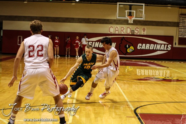 during the Pratt Greenbacks at Hoisington Cardinals Boys Basketball game with Pratt winning 66 to 34