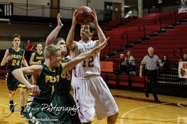 during the Pratt Greenbacks at Hoisington Cardinals Boys Basketball game with Pratt winning 66 to 34