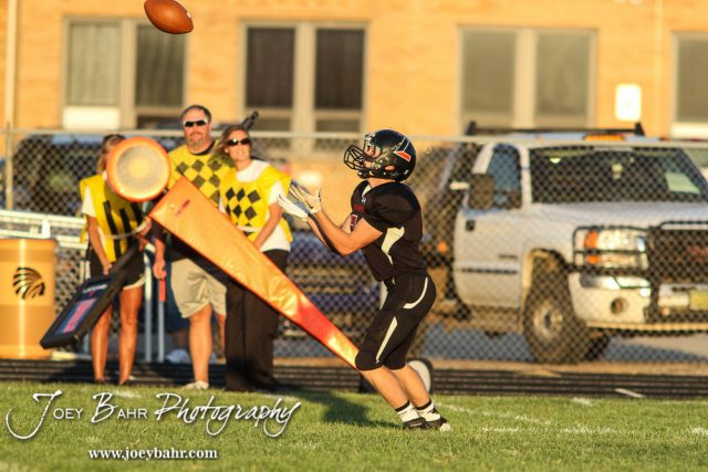 Larned Indian Shevin Martin (#7) lines up to catch a punt. The Pratt Greenbacks win 31 to 16 over the Larned Indians at Earl Roberts Field in Larned, Kansas on September 2, 2016. (Photo: Joey Bahr, www.joeybahr.com)undefined