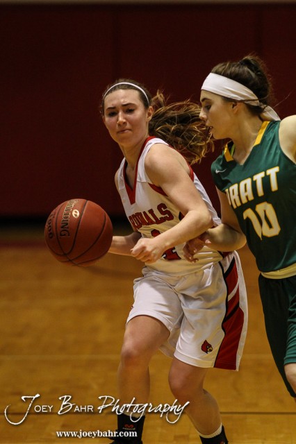 during the Pratt Lady Greenbacks at Hoisington Lady Cardinals Girls Basketball game with Pratt winning 34 to 23