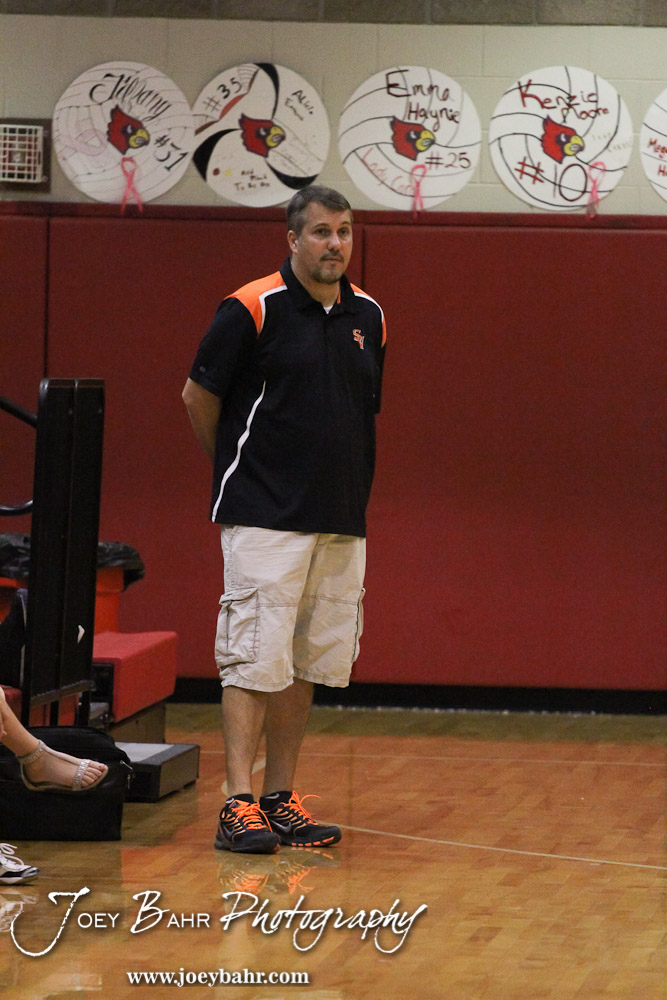 Smoky Valley Lady Viking Head Coach Doug Schneider watches his players during the Hoisington versus Smoky Valley volleyball match with Hoisington winning in two sets at Hoisington Activity Center in Hoisington, Kansas on October 22, 2013. (Photo: Joey Bahr, www.joeybahr.com)