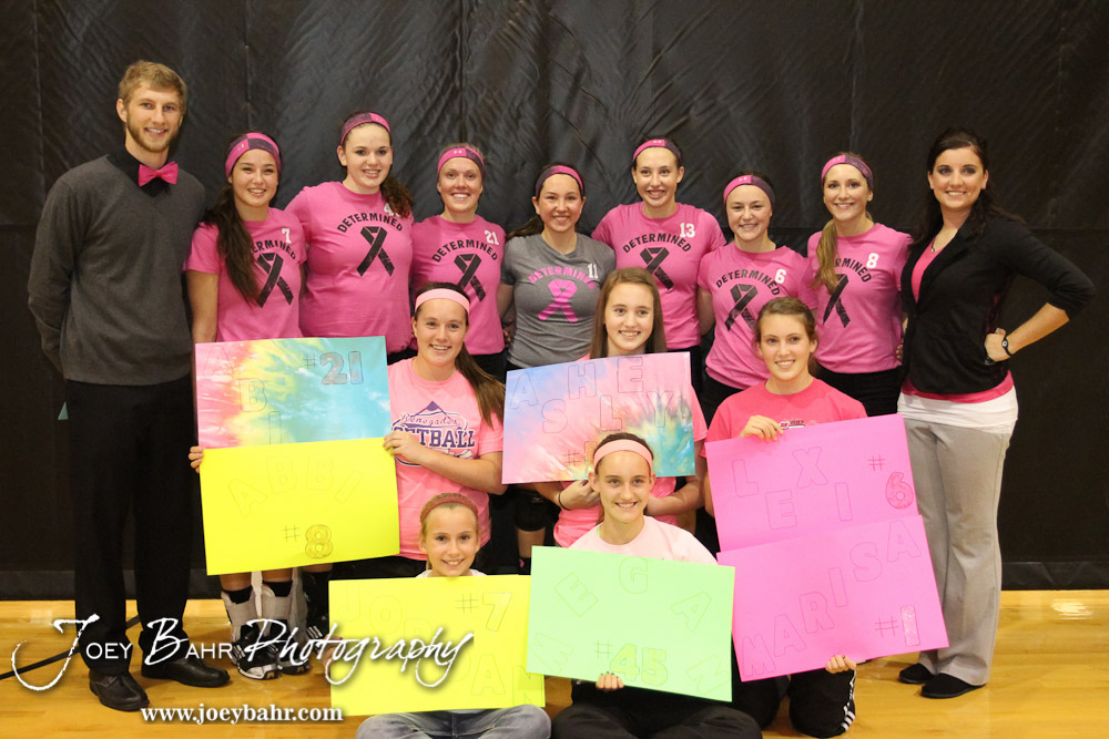 The Hoisington Lady Cardinals line up for a picture following the Hoisington versus Smoky Valley volleyball match with Hoisington winning in two sets at Hoisington Activity Center in Hoisington, Kansas on October 22, 2013. (Photo: Joey Bahr, www.joeybahr.com)