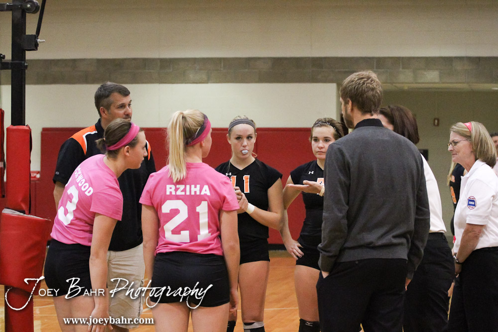 Captains and Coaches for both teams meet with the Officials before the Hoisington versus Smoky Valley volleyball match with Hoisington winning in two sets at Hoisington Activity Center in Hoisington, Kansas on October 22, 2013. (Photo: Joey Bahr, www.joeybahr.com)