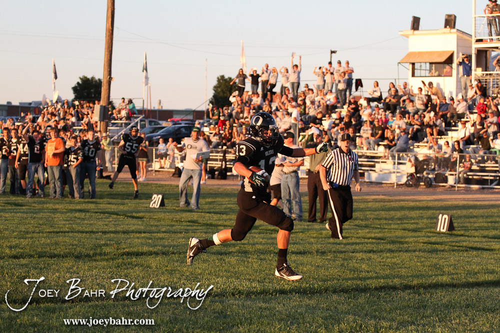 Central Plains Oiler Michael Lamatsch (#13) runs during the St. John versus Central Plains High School Football Game with Central Plains winning 54 to 8 at Central Plains High School in Claflin, Kansas on September 20, 2013. (Photo: Joey Bahr, www.joeybahr.com)