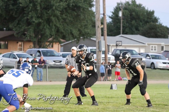 Central Plains Oiler Braedan Crites (#10) takes a snap from the shotgun formation during the St. John versus Central Plains High School Football Game with Central Plains winning 54 to 8 at Central Plains High School in Claflin, Kansas on September 20, 2013. (Photo: Joey Bahr, www.joeybahr.com)
