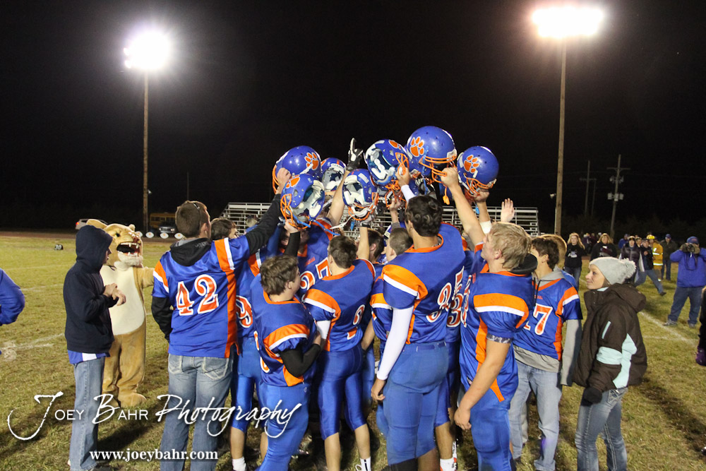The Otis-Bison Cougars breakdown following the Sylvan-Lucas vs Otis-Bison High School football game with Otis-Bison winning 32 to 30 at Otis-Bison High School Field in Otis, Kansas on October 31, 2013. (Photo: Joey Bahr, www.joeybahr.com)
