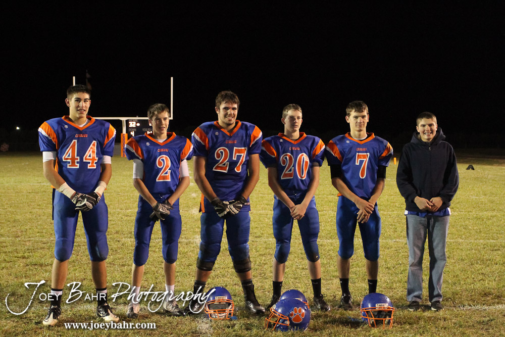 The Otis-Bison Cougars Sophomores take a team picture following the Sylvan-Lucas vs Otis-Bison High School football game with Otis-Bison winning 32 to 30 at Otis-Bison High School Field in Otis, Kansas on October 31, 2013. (Photo: Joey Bahr, www.joeybahr.com)