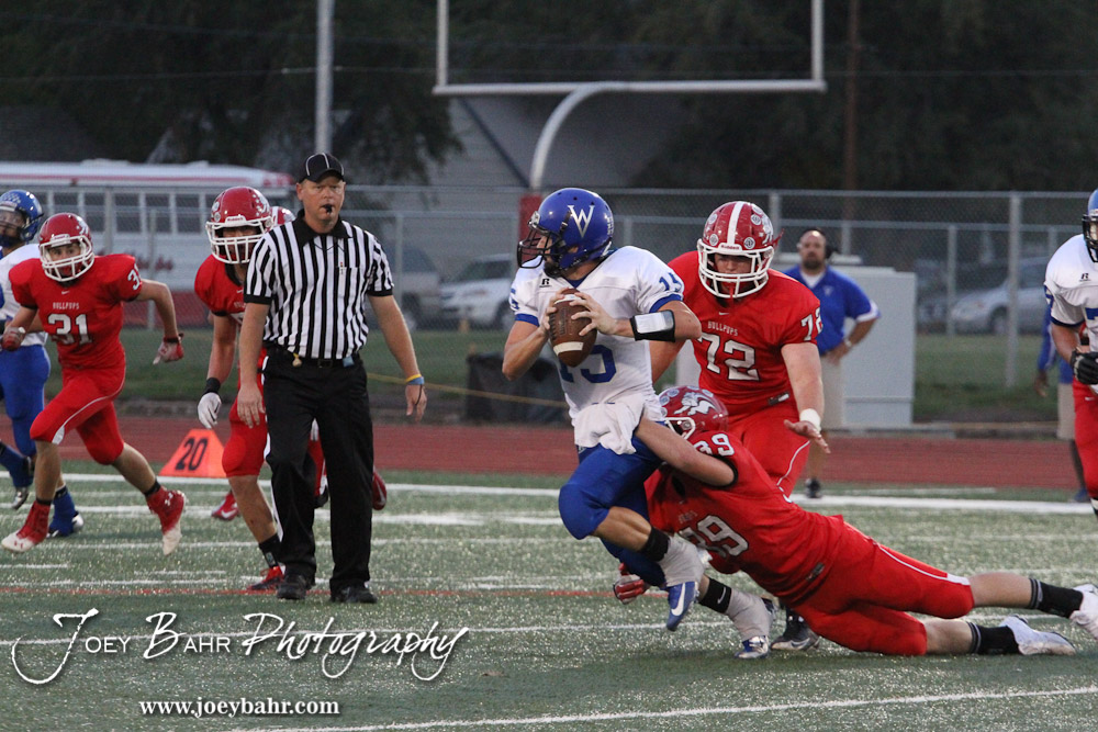 the Winfield at McPherson football game that ended in a 47 to 8 victory for the Bullpups