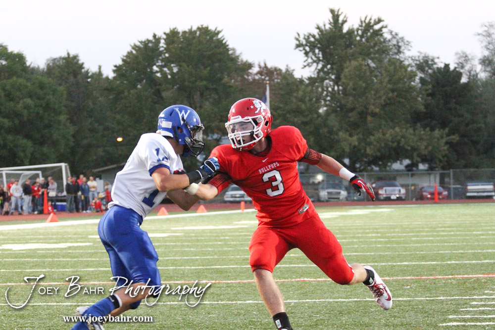 the Winfield at McPherson football game that ended in a 47 to 8 victory for the Bullpups
