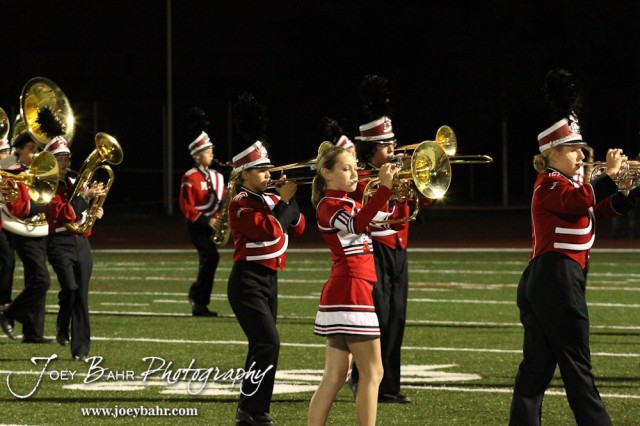 The McPherson Bullpups Marching Band Performs at Halftime of the Winfield at McPherson football game that ended in a 47 to 8 victory for the Bullpups at the McPherson Stadium in McPherson, Kansas on September 28, 2012. (Photo: Joey Bahr, www.joeybahr.com)