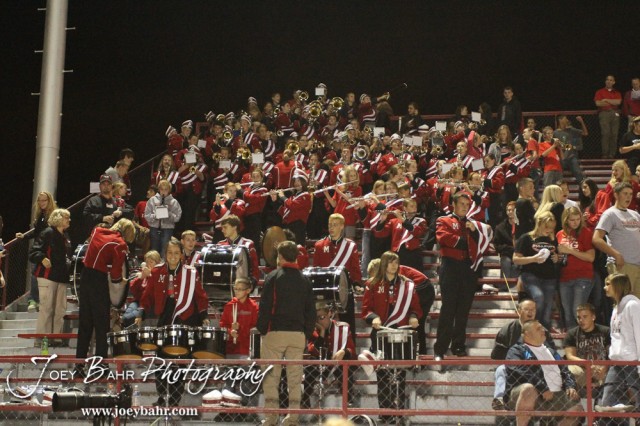 The McPherson Bullpups Marching Band play during the Winfield at McPherson football game that ended in a 47 to 8 victory for the Bullpups at the McPherson Stadium in McPherson, Kansas on September 28, 2012. (Photo: Joey Bahr, www.joeybahr.com)