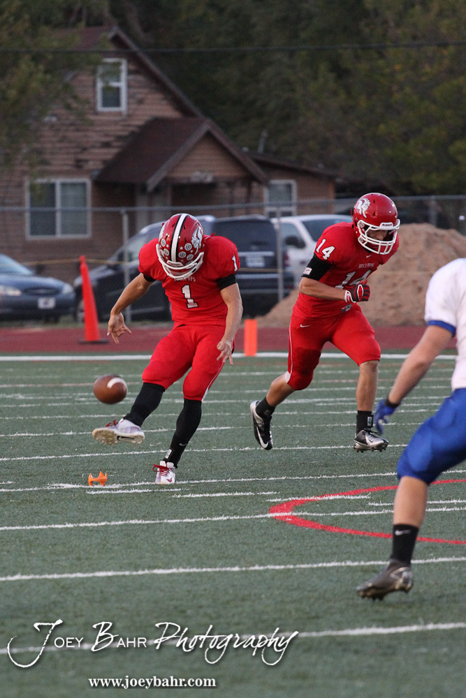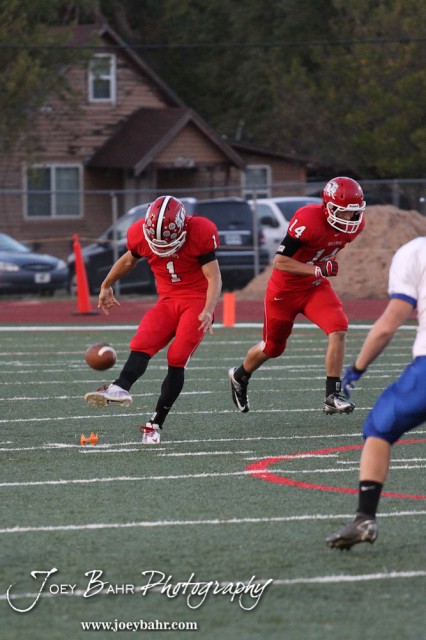 McPherson Bullpup Marcus Houghton (#1) kicks off the Winfield at McPherson football game that ended in a 47 to 8 victory for the Bullpups at the McPherson Stadium in McPherson, Kansas on September 28, 2012. (Photo: Joey Bahr, www.joeybahr.com)